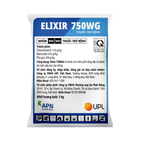 ELIXIR 750WG là thuốc trừ bệnh phổ rộng, tác động đa điểm, tiêu diệt nấm hại theo nhiều cơ chế. Với dạng cốm dễ tan, tạo dung dịch đồng nhất sau khi pha nên không gặp tình trạng lóng cặn, nghẹt béc hay bám màu vào vỏ trái.