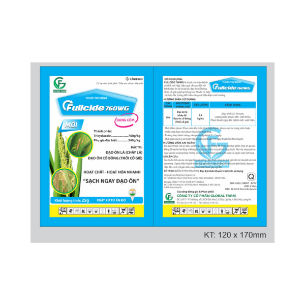 •FULLCIDE 760WG có hoạt chất Tricyclazole được sử dụng phòng trị bệnh đạo ôn lúa rất phổ biến hiện nay.